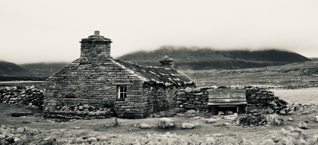 I had to look up heather thatching – had never come across it while in the UK. I’m guessing your picture shows flat stones holding the thatch in place against the storm winds?