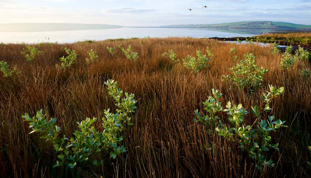 At the very bottom of the meadow, just before the land falls steeply to the shore, there’s an area of ground that never dries out. It’s the spot where we’ve added wildlife ponds. The areas between the ponds are thick with rush. We tried, in the first year of making the meadow, to mow the rush down and thus spent an afternoon digging our old diesel power scythe out of the mud. Since then the area has been planted as a small coppice of willow. We used a grey leaved variety that does well in Orkney, salix hookeriana, the dune willow, a native of western North America. Two feet long broomstick thick cuttings, from a friends garden along the road, were  pushed with ease into the soft ground. In the first year they stood still but  in year two they came to life, growing rapidly and leaving the rushes behind. They’re salt hardy but brittle. In time we’ll coppice them, before the wind does it for us.