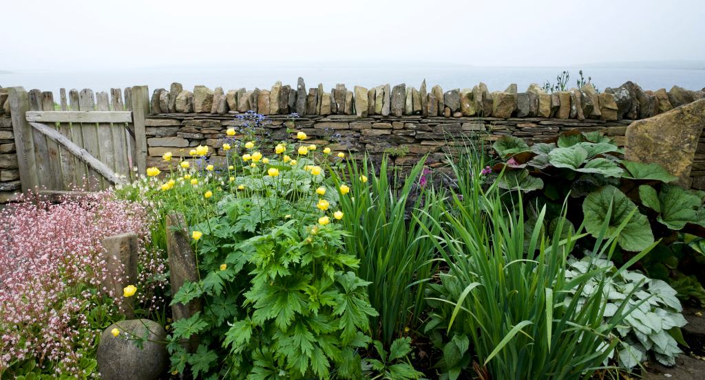 May, so far, has become a month of mists. At the moment haars are seemingly ever present, sometimes so thick they steal the view beyond the garden dykes. The linked  island of South walls, a mere mile or so across the bay, appearing and disappearing as the fogs ebb and flow. On other days they lurk in low banks in the Offing, the point on the sea where the view is lost over the horizon. Whether near or far they are always localised, occasionally, with bright blue skies above us, we’ll still hear the low rolling boom of a distant foghorn.