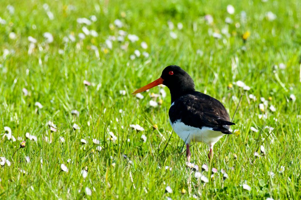 In the wider landscape wildflowers are dusting the fields with colour. On a favourite walk, that at first has the sea to one side and pasture to the other, the low lying fields are white with the flowers of daisies. The pastures, grazed by cattle in the summer months, are a favourite haunt of Curlews and Oystercatchers who prod and poke amongst the short sward, searching for worms and other invertebrates.