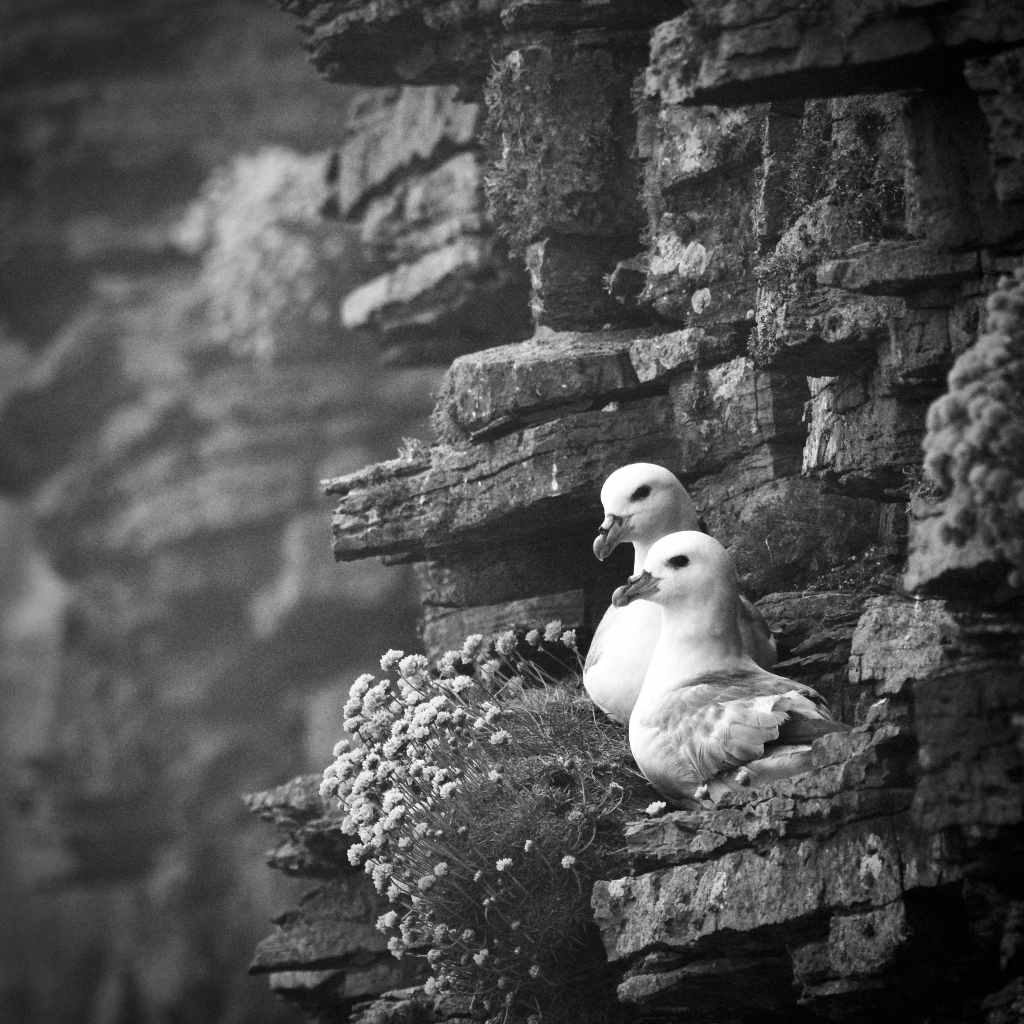 The last week of May brought mostly dry days. Tuesday past was the odd day out, a bright start to the day followed by an afternoon haar. I’d set off to photograph Fulmars in a nearby geo, managing the single frame above before the fog rolled in and stole the light. Tuesday apart, a bright and settled spell. Sunshine and blue sky days.