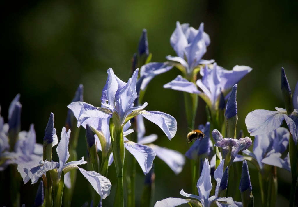 In the garden the flowers of irises are starting to unfurl. On our old patch down in Yorkshire we grew bearded iris, lovers of heat and dry conditions, they were perfect for that gardens sandy soil and south facing aspect. Up here we grow iris sibirica, the Siberian iris, lovers of cooler and damper conditions they have become an early summer mainstay for this island garden.