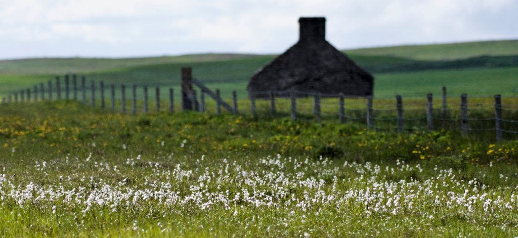 A midweek walk took me to Cantick. A headland on the island of South Walls, that, at its tip, has the lighthouse of Cantick Head. There’s a circular walk that takes you past the lighthouse itself, but I chose to follow the lighthouse road only so far before cutting across open ground towards a wide bay named Hestie Geo. The land is a patchwork of rough grazing and coastal heath. Here and there are roofless crofts, they stand as a silent testament to a lost way of life, a time when the winds passing over the fields would have carried the voices of adults and the laughter of children.