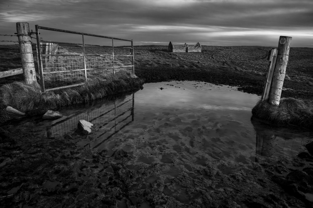 We’ve had our fair share of rain and in the wider landscape the ground is sodden. At this time of year hardy Shetland and Shetland cross sheep are put out on a South Walls headland. Part of an environmental scheme that helps keep the sward short and allows low growing wildflowers, including the elusive Primula scotica, to thrive. At a bottleneck gate, where they funnel from one area of heath to the other, the ground is poached to mud and a temporary pond has formed, a true test for just how waterproof your boots really are 🙂