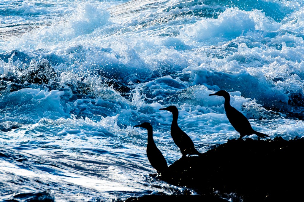 Below the fulmars wings, there are steep sided geo’s and rocky shores. On a day where a cauldron of surf seethed and boiled, courtesy of a recent gale, I watched three Shags, each seemingly plucking up the courage to enter the water. In the end they went in together, bobbing like corks in a washing machine, dashed to and fro by the surf and like the fulmars above them, perfectly at home in their world.