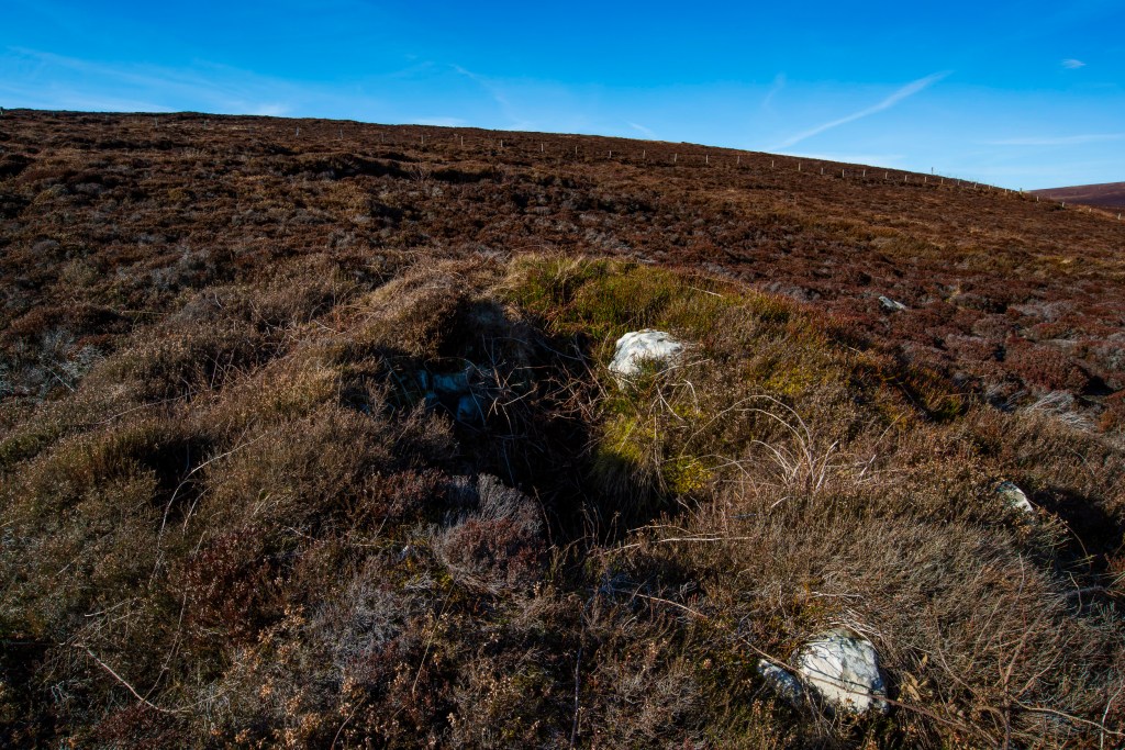 Beyond the cuts the ground rises again, there’s another fence, rising and falling with the contours, running arrow straight across the moor, a testament to the skill of the man or men who put it up. It terminates in a valley, a mile or two further on, on the shore of the islands reservoir. It’s a few years since I’ve seen any livestock up here, changes in farming practice mean the fence currently keeps neither nothing in nor nothing out. From the base of the fence three grouse burst from the heather, chestnut bodies flashing silver-white underwings. They glide away, heading downhill, back to the cuts.