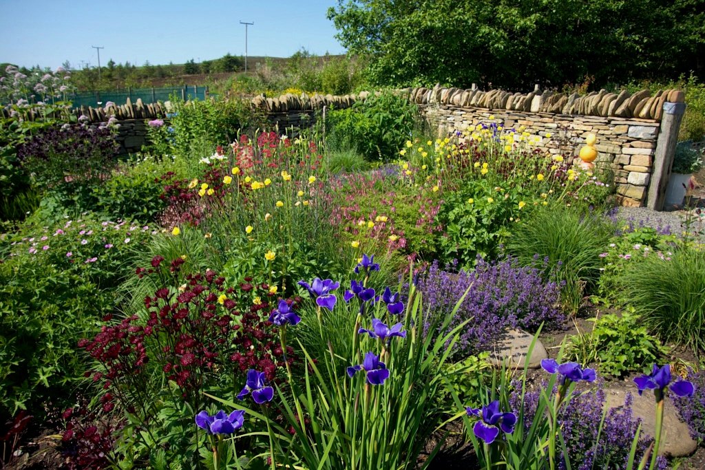 The garden in five years has been transformed, Jacqui sowing her magic and making plants thrive on an exposed edge of moorland site of poor thin soil. Insect and Bee friendly it has gone from a tangle of bramble to a cottage (or croft) garden full of colour in five short Summers.