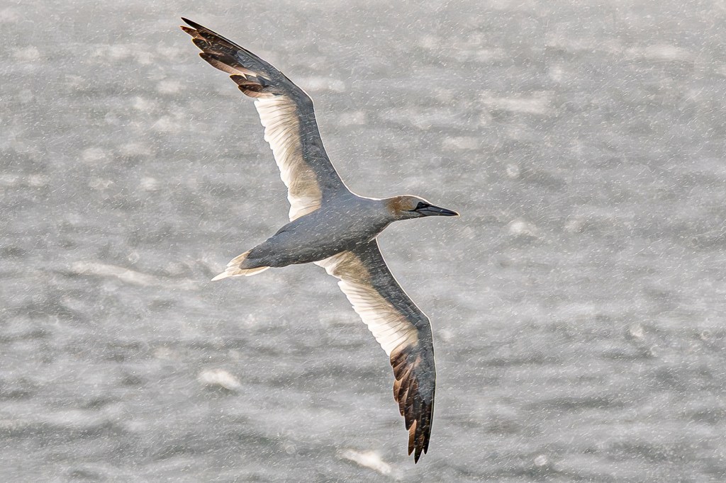 A sure sign that Spring isn’t too far away, is the return of Fulmars to the cliffs. One day last week, not far from the temporary pond, I watched them rise and fall on the up-draughts. They’re pelagic birds, nomads of the sea, returning to land only to breed, laying a single egg in May in a scrape of a nest that the same monogamous pair could have used for decades. With a stiff easterly coming in off the sea, the birds were riding the wind, perhaps just for the joy of it. They’re of their own world, seemingly oblivious to ours and come so close that you can almost reach out and touch them. To do so though would be like breaking a spell.
