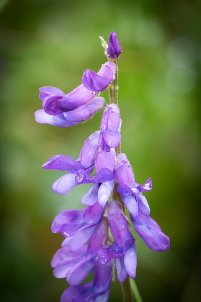A wildflower that is equally happy at both ground or eye level, although for the latter it needs a handy shrub or fence to climb, is tufted vetch. A member of the pea and bean family that spreads by seeds cast from tiny black pods. Also known as the Cow vetch. It was believed in the 19th century that a cow grazed on vetch would be more easily wooed by the bulls advances.