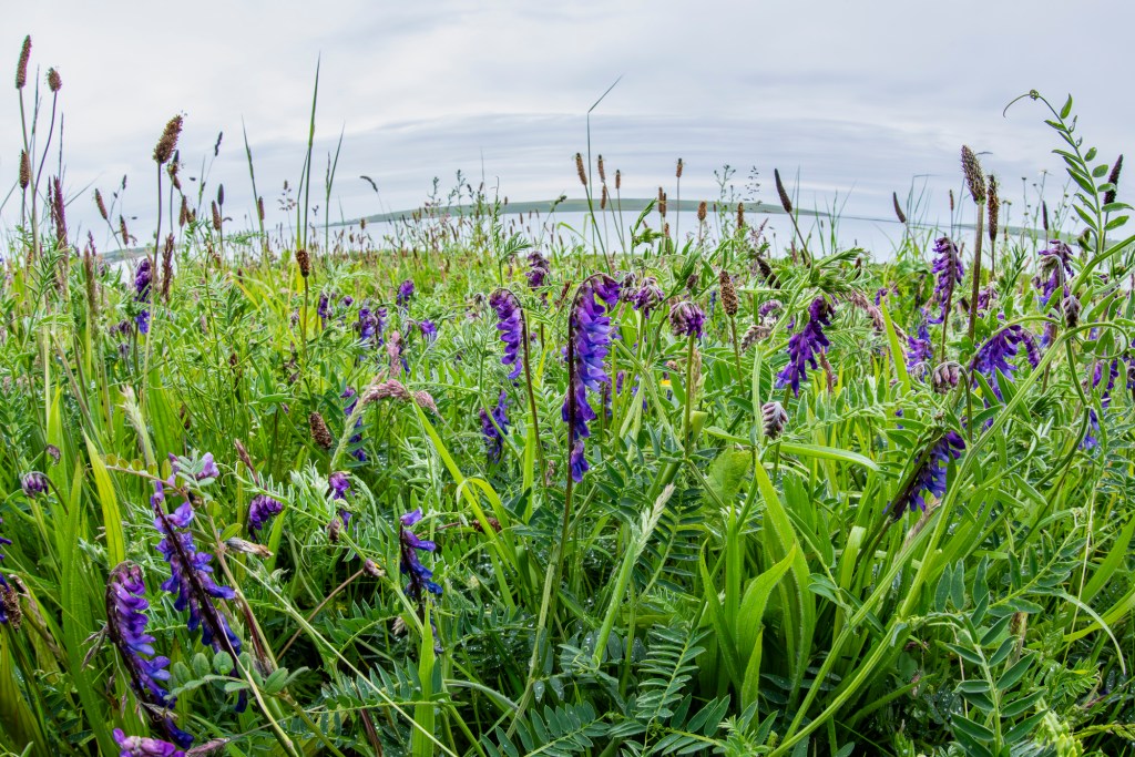 A surprise arrival for this year is Common cotton grass, as its name suggests it’s not a rare plant, at this time of year the moors here are dusted white with countless seed-heads, bobbing and swaying in the breeze and giving movement to the land. There are three species of Cotton grass in Orkney and the surprise is where it’s growing. The common variety likes the wettest spots, happy in standing water. In the meadow it has popped up, after one of the driest Springs on record, in what is probably the driest part of the meadow. As with most of the plants pictured here, I photographed it just after rain. Once used for stuffing pillows its normally fluffy seed heads were sodden but still beautiful. I hope it spreads.