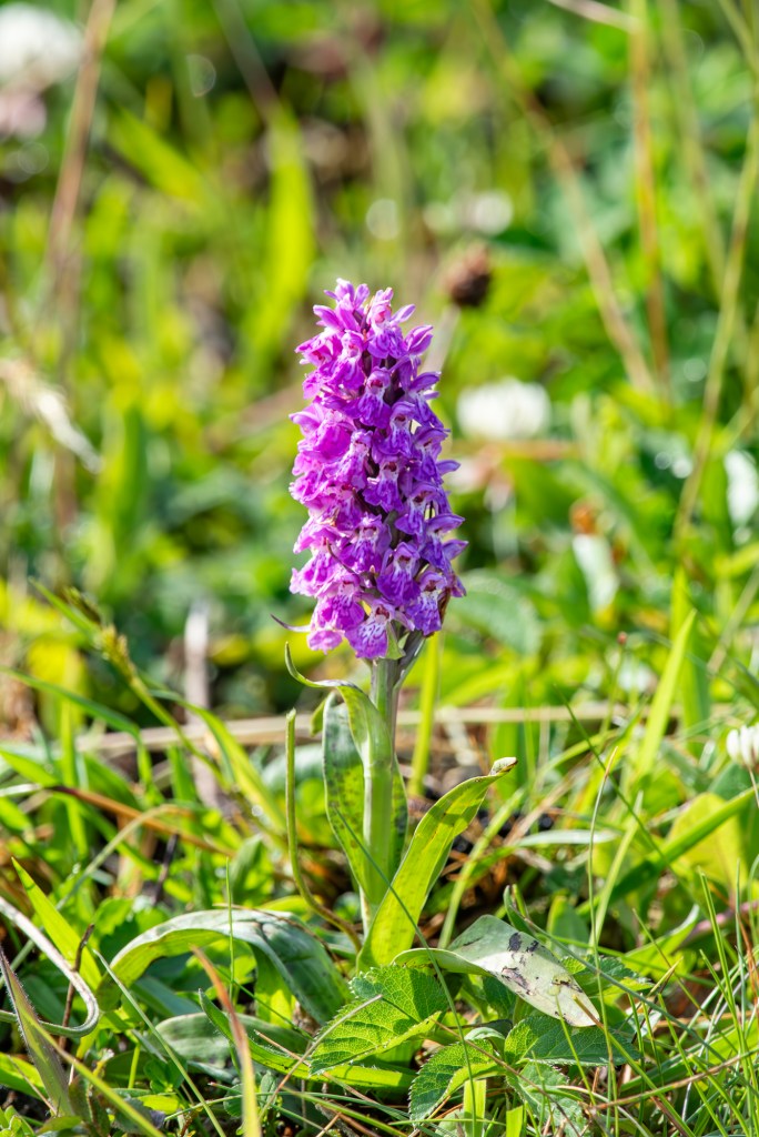 The one species we really hoped would appear, is the Orchid. A plant that is almost impossible to introduce unless specific fungi, with which they form a symbiotic relationship that allows seeds to germinate, and then seedlings to develop, are already present. Last year a single Northern marsh orchid appeared, this year there are three, from seed to flowering takes three to five years, the new meadow is four summers old. With 21 species of orchid in Orkney, fingers are crossed that others will pop up as time goes on.