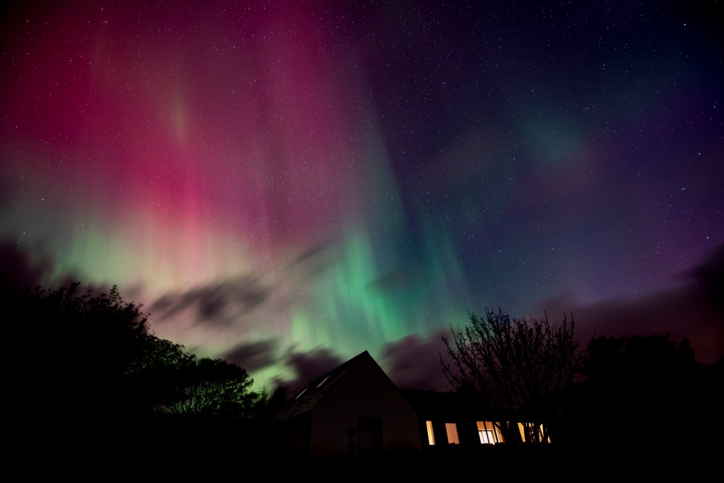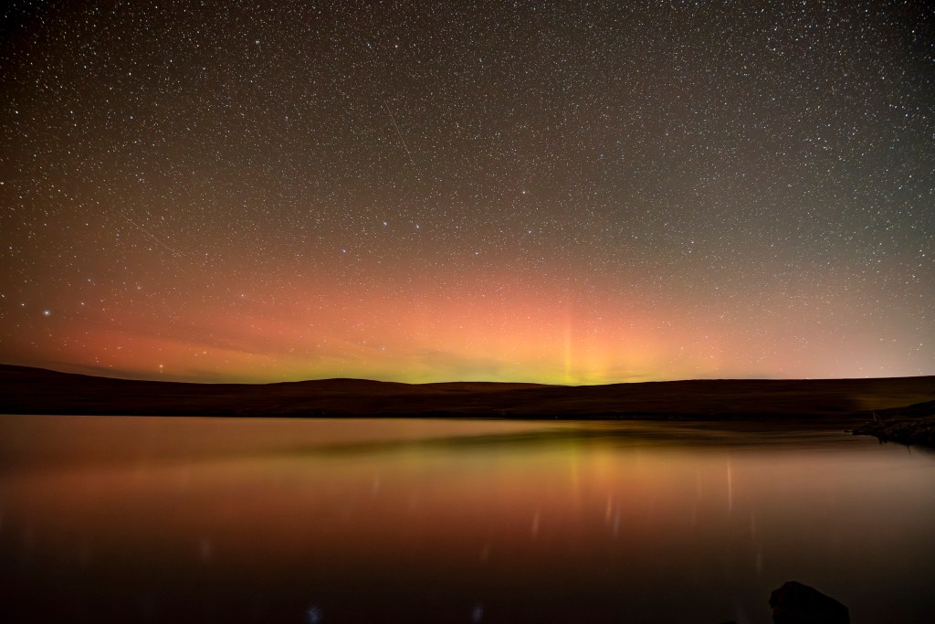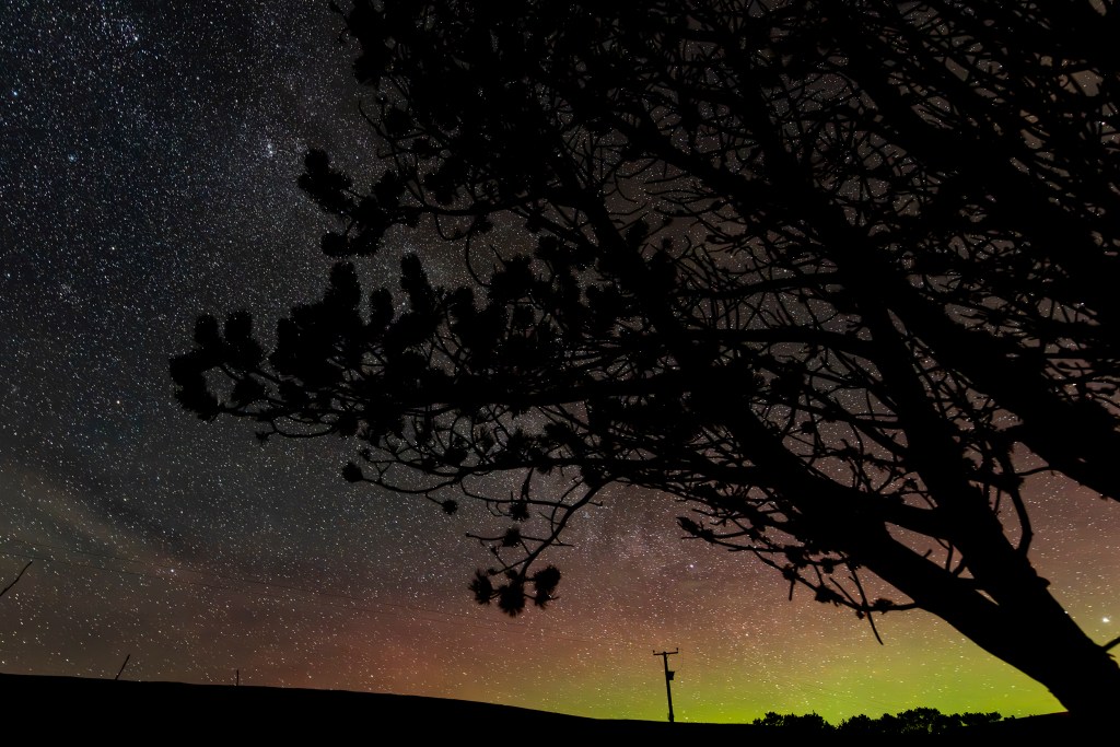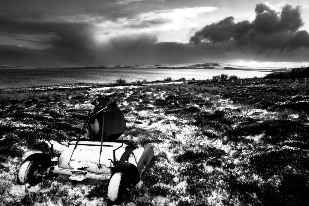 Clear frosty nights brought faint views of the Mirrie Dancers together with crystal clear views of the night sky and the Milky way. One evening, at close to midnight, I took a couple of frames, one from the edge of the garden, another from a spot where garden ends and moor begins. The silence was deafening, only broken by the click of the shutter or the occasional murmuring of Greylag geese roosting out on the water of the bay.