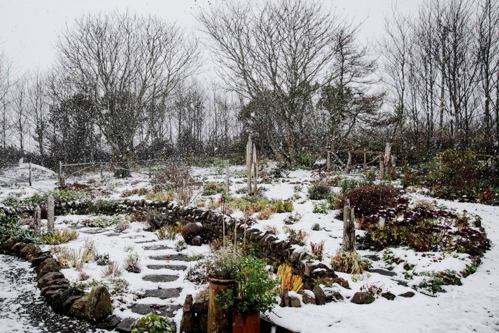 Although the garden won’t really wake from its slumber for some months, there’s still old and new life to be seen. At this time of year, Lichens are noticed, brittle clusters of soft grey-green that have a growth rate of a millimetre or so per year. We’ve noticed that they are already starting to form on trees planted only a few years ago, those on the trees we inherited must be many decades old. A forest in miniature.