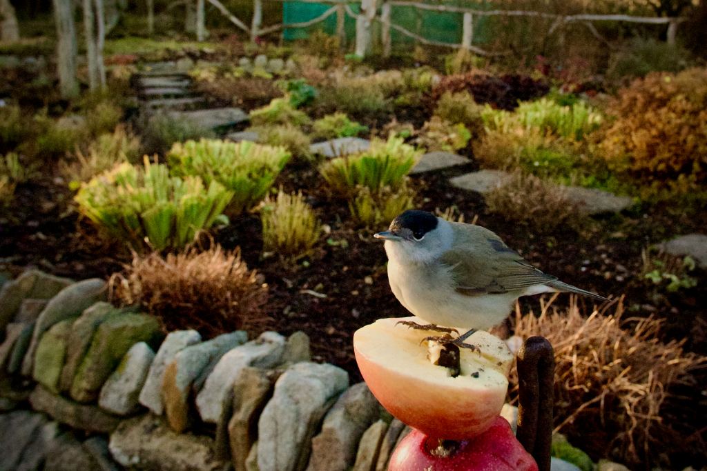 The days following New Year brought better weather, a couple of fleece and Tee shirt days. A temporary wind break, put up to shield solar panels and their yet to grow screen of young Willow from the worst of the Westerlies, had come a poor second to a pre New Year 90mph gale. While the sun shone, windbreak Mk2 went up, longer stabs, driven deeper into the ground. Despite the loud rhythmic clanging of the post driver, a Robin spent the day with us. Checking the ground around our feet for goodies, and perhaps giving marks out of 10 for fence straightness and height.