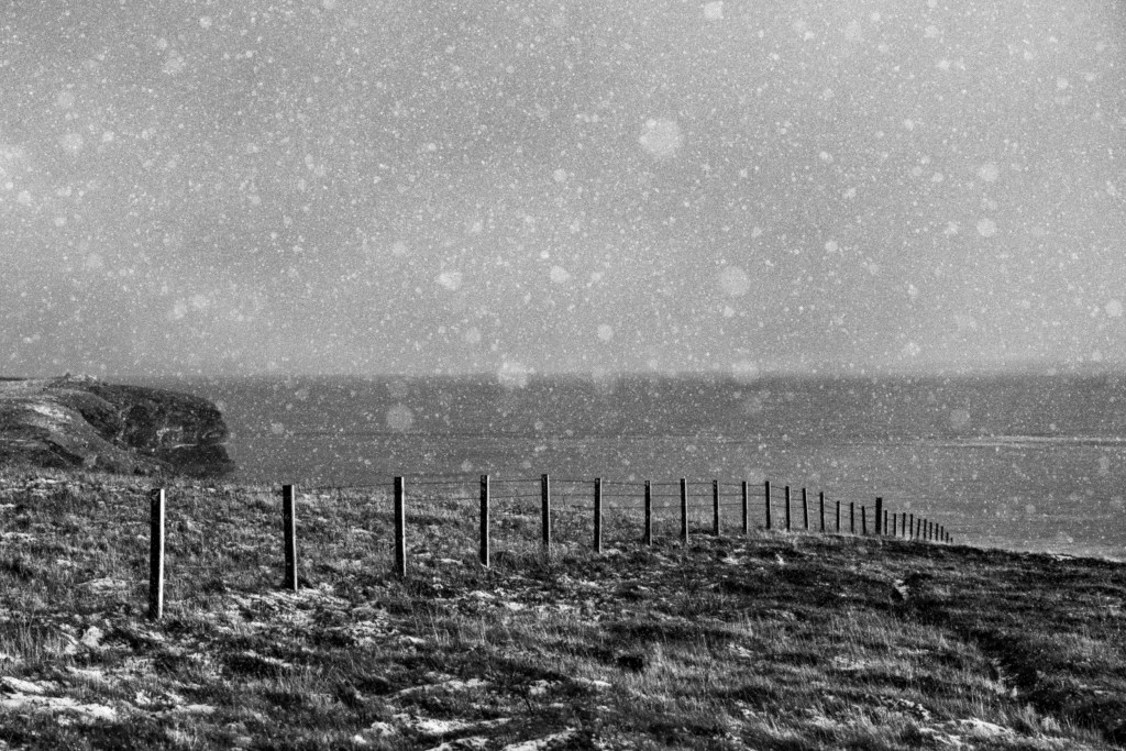 We finished the fence just in time. The following day brought Northerlies, horizontal hail and bitter cold, when the winds eased, the hail turned to snow. Each shower brought no more than a dusting, never settling to any great depth, just enough to give a cold beauty to the land.